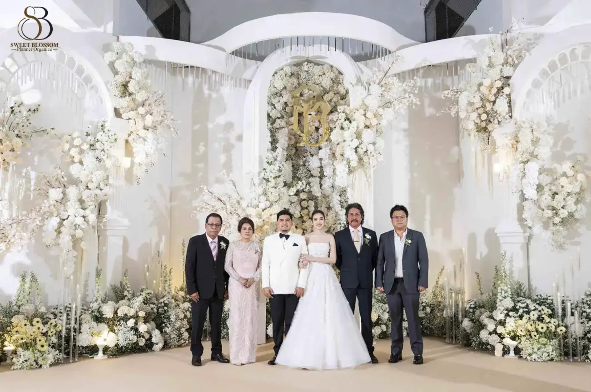 Backdrop ไม่ใช่แค่ฉากหลังถ่ายรูปอย่างเดียว เเต่สามารถปรับเปลี่ยนเป็นฉากช่วงรดนํ้าสังข์ได้เช่นเดียวกันค่ะ ซึ่งในงานแต่ง เรามักจะเห็น Backdrop เป็นจุดหลักที่ทุกคนมาร่วมถ่ายภาพด้วยกัน