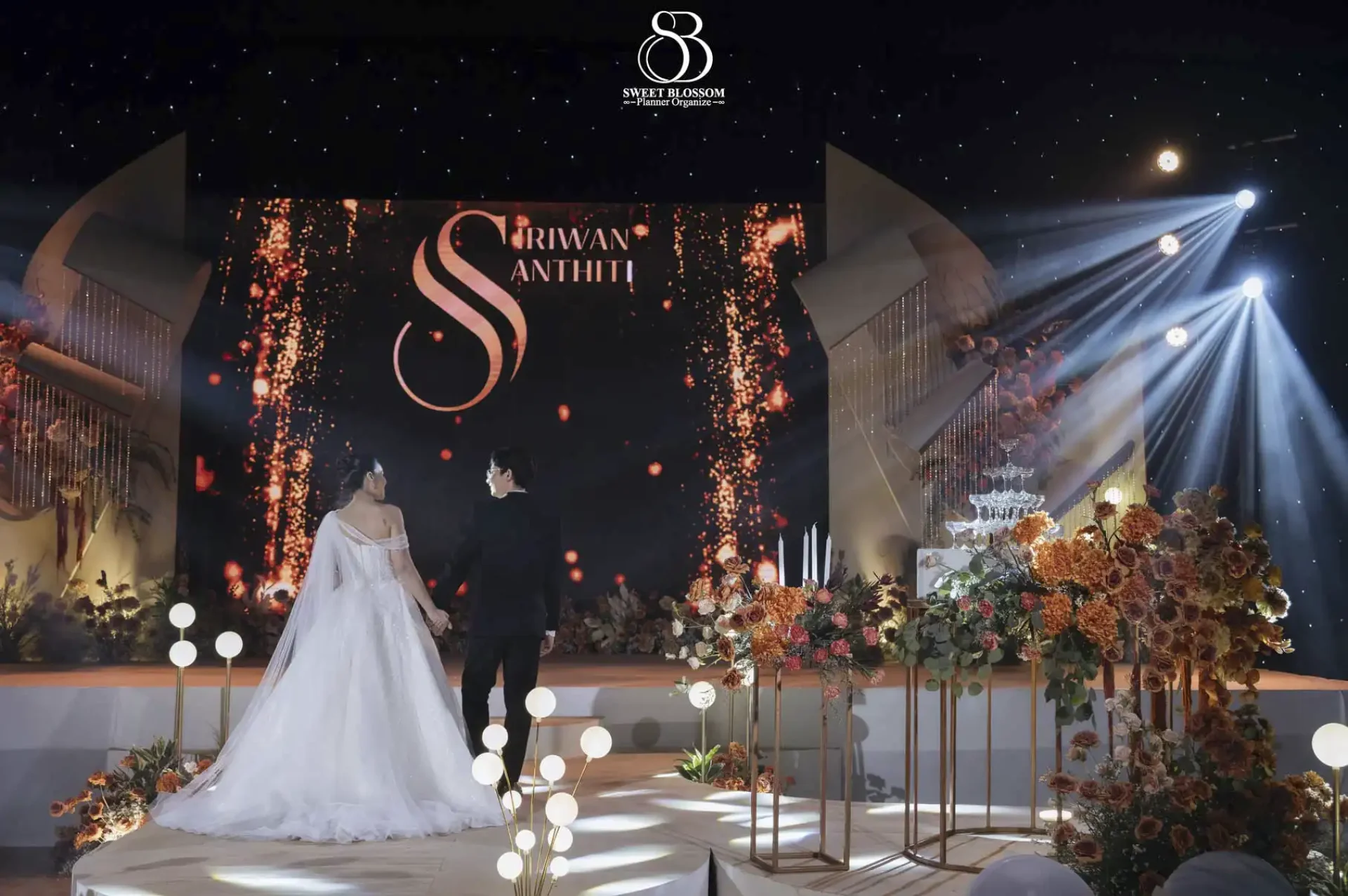 ถ้าบ่าวสาวจัดงานแต่งภายในห้องโถง สามารถเพิ่มจอ LED ในสถานที่ได้